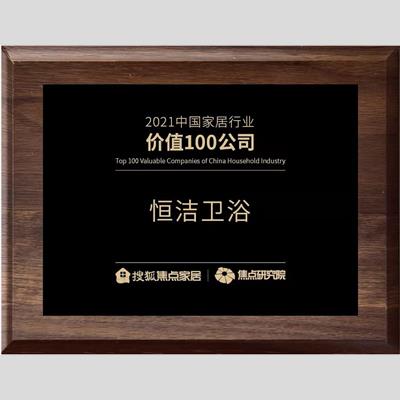 獎 項:2021年度中國家居行業價值100公司——恒潔衛浴