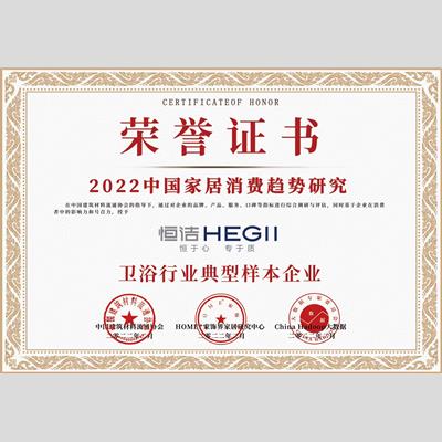 獎 項:2022中國家居消費趨勢研究-衛浴行業典型樣本企業