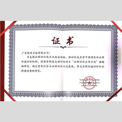 獎 項:品牌評價示范基地