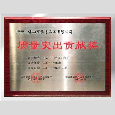 獎 項(xiàng):2017年度市政府貢獻(xiàn)獎(廣東恒潔衛(wèi)浴有限公司)
