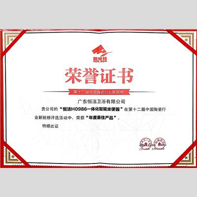 獎 項:第十二屆中國陶瓷行業新銳榜-年度最佳產品(H0986)
