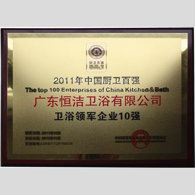獎 項:2011年中國廚衛百強 衛浴領軍企業10強