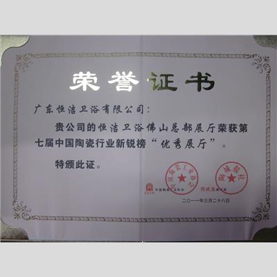 獎 項:第七屆中國陶瓷行業新銳榜年度優秀展廳