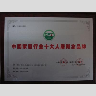 獎 項:中國家居行業十大人居概念品牌