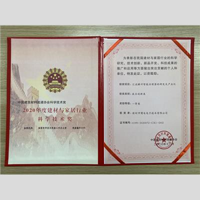 獎 項:2020年度建材與家居行業-科學技術獎 技術創新類一等獎-恒潔博電