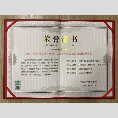 獎 項:2020中國建材家居·陶瓷衛浴 行業自主民族品牌-領銜制造企業