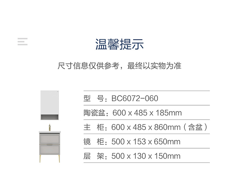 主柜尺寸:600x485x860mm(含盆)