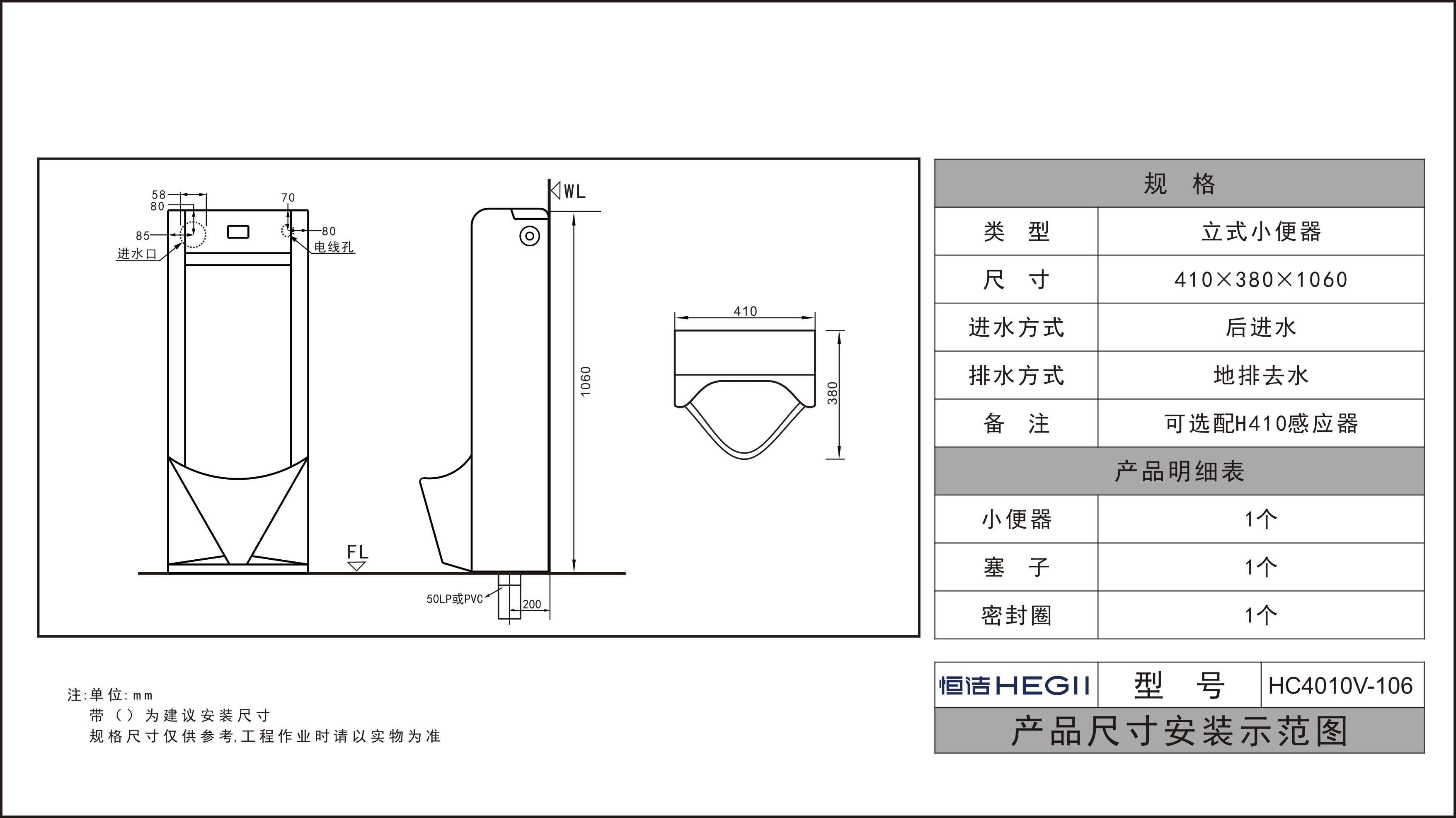 HC4010V-106一體感應立式小便斗